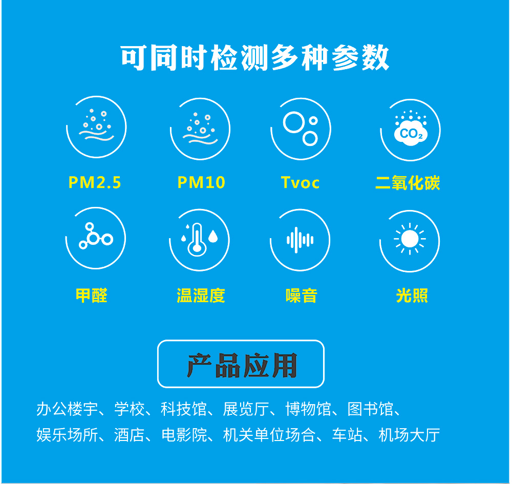 應(yīng)用 : 辦公室、教室、酒店、車間、公共場所等環(huán)境監(jiān)測